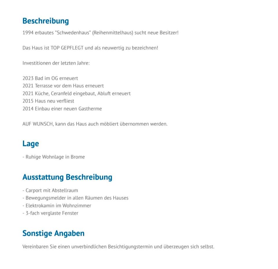 Sie befinden sich hier: Haus in Brome (Ohne Provision) in Brome - 3344294042-208-3080 | 1A-Immobilienmarkt.de