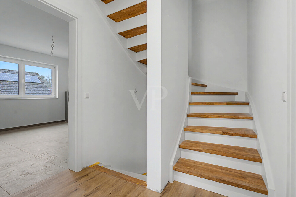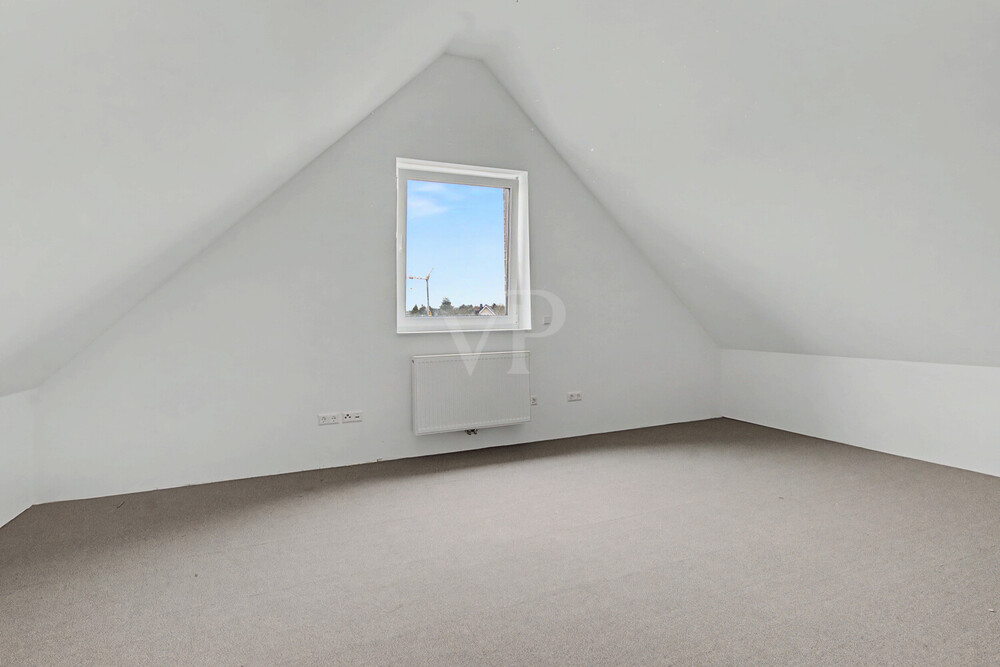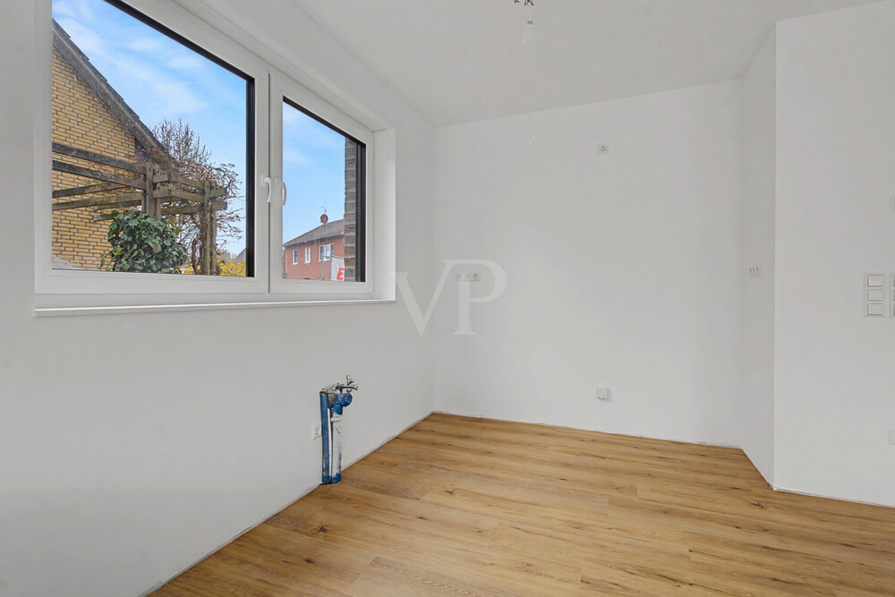 Große Kunststofffenster mit 3-fach-Isolierverglasung lassen viel Tageslicht herein. Die moderne Elektroausstattung mit zeitlosem Gira-Standard-55-Schalterprogramm, das großzügige Badezimmer sowie vier flexibel nutzbare Schlafzimmer bieten höchsten Wohnkomfort.