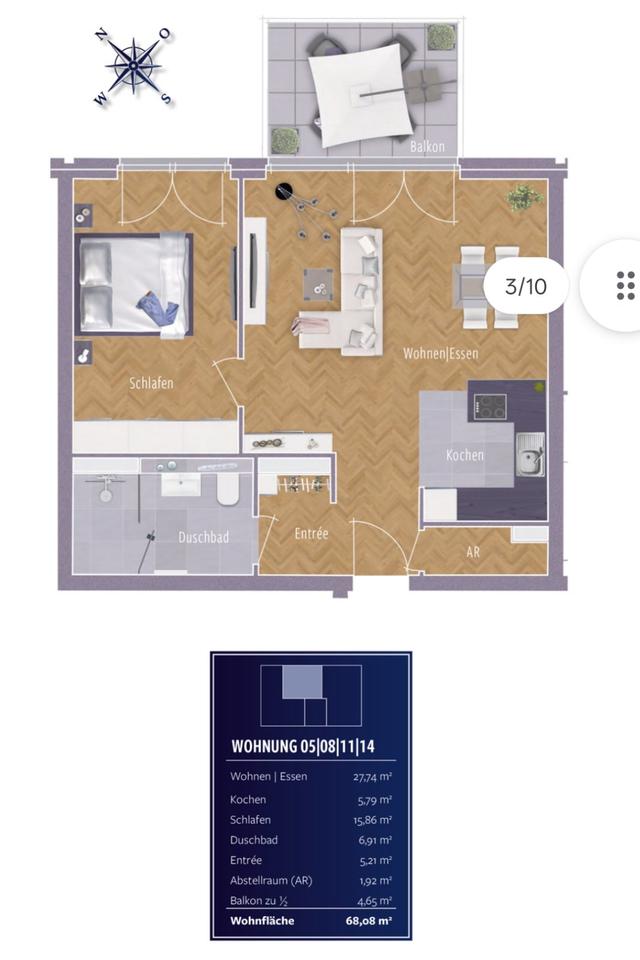 Zimmeranzahl :2 Gesamtgröße :ca. 68,08 m² Stand vom :08.03.2026