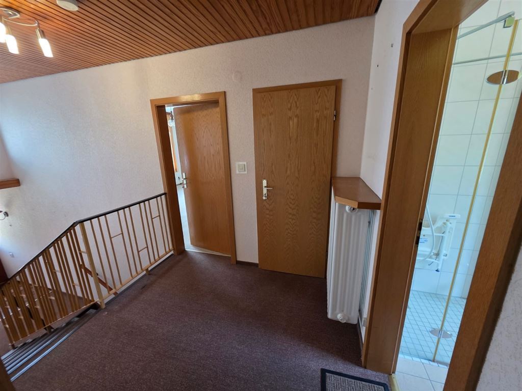 • Massive Bauweise • Ruhige exponierte Lage mit Baumbestand • Große überdachte Terrasse mit Photovoltaik-Balkonkraftwerk • Giebelwände Verklinkert • Ausbaufähiges Dachgeschoss • Doppelgarage in massiver Bauweise mit Grube • beheizbare Garage im Wohnhaus (Werkstatt) • Wohnraum im Kellergeschoss durch Hanglage • Bad mit Ebenerdiger Dusche aus 2018 • Gepflegte Gartenanlage • Dachstuhl mit Tonpfanneneindeckung im sehr guten Zustand • Das Objekt könnte sofort übernommen werden • Erweiterungspotenzial • Einliegerwohnung 50 m² (vermietet) • ggf. Anbau über der Einliegerwohnung möglich • Buderus Brennwertheizung aus 2007 • 8000 Liter Öl-Tanks • der Energieausweis befindet sich in Bearbeitung