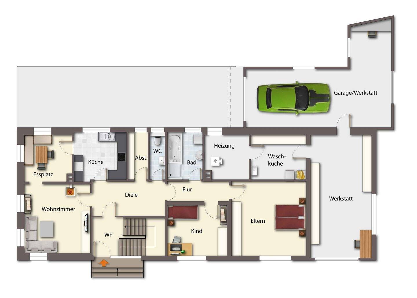 Zweifamilienhaus mit 3 Garagen und Werkstatt