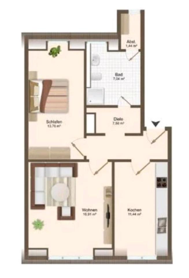 2-Zimmer Wohnung mit Küchenmöbel nach Sanierung