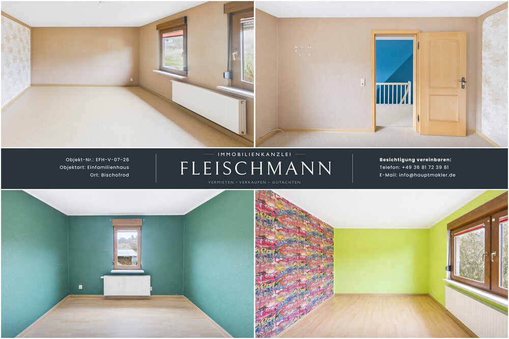 Das Einfamilienhaus liegt in ruhiger, gewachsener Wohnlage von Bischofrod – nur wenige hundert Meter vom Ortskern entfernt. Hier genießen Sie naturnahes Wohnen mit viel Ruhe und einer angenehmen Dorfatmosphäre.
