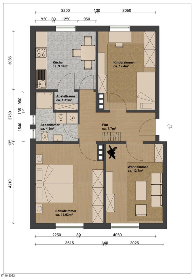 Zimmeranzahl :3 Gesamtgröße :ca. 63,00 m² Stand vom :12.03.2026