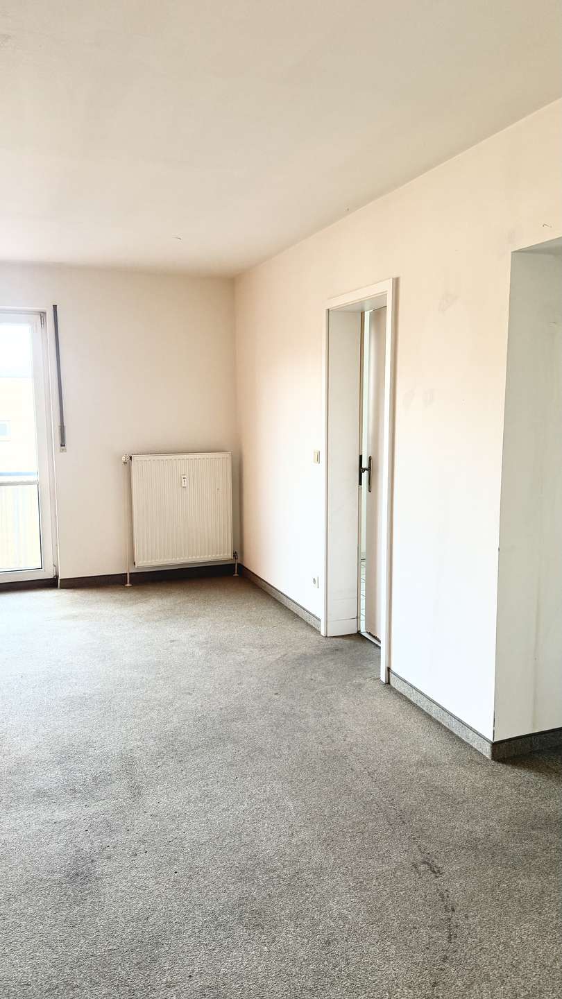 Die Wohnung verfügt über einen funktionalen Grundriss mit Wohnzimmer und Balkonzugang, separatem Schlafzimmer, Küche sowie einem innenliegenden Bad mit Badewanne und Lüftung. Große Fensterflächen sorgen für gute Lichtverhältnisse, der Balkon bietet zusätzlichen Wohnkomfort.