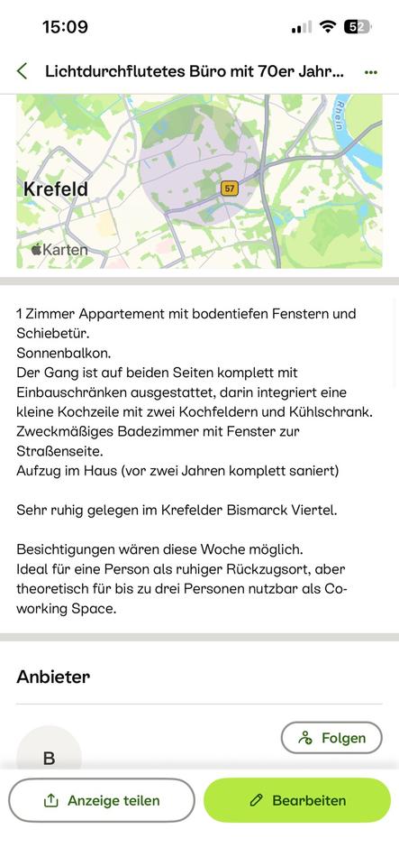 Sie befinden sich hier: Helles Büro mit Schiebetür zu einem ruhigen Balkon in Krefeld Bockum - 3347475125-277-1975 | 1A-Immobilienmarkt.de