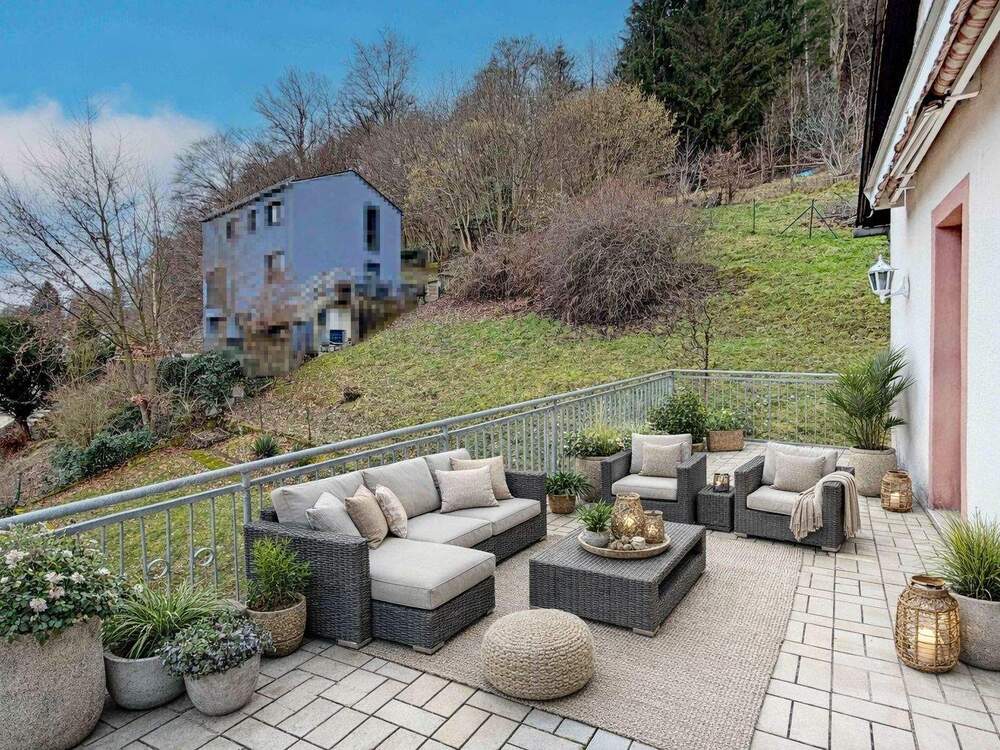 • Terrasse, Einrichtungsbeispiel (KI-generiert) - 9 Zimmer Mehrfamilienhaus, Wohnhaus in Schönau