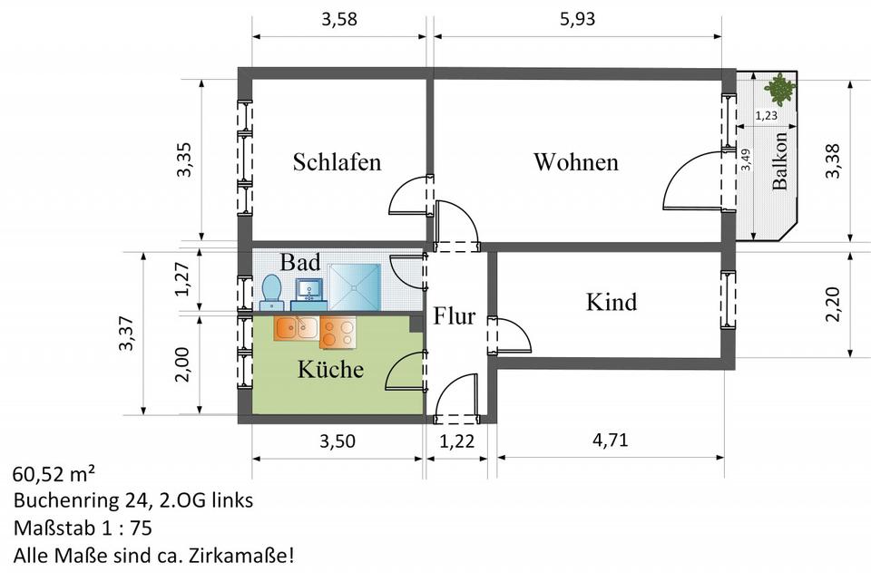 | Gesamtgröße: | ca. 60,52 m² |