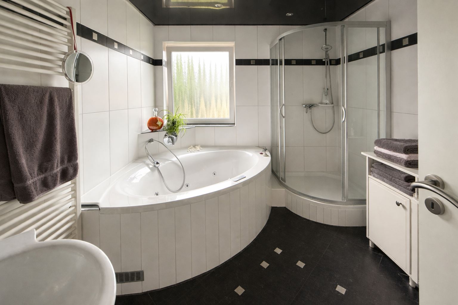 ein modernes Tageslichtbad mit Eckwanne und Dusche