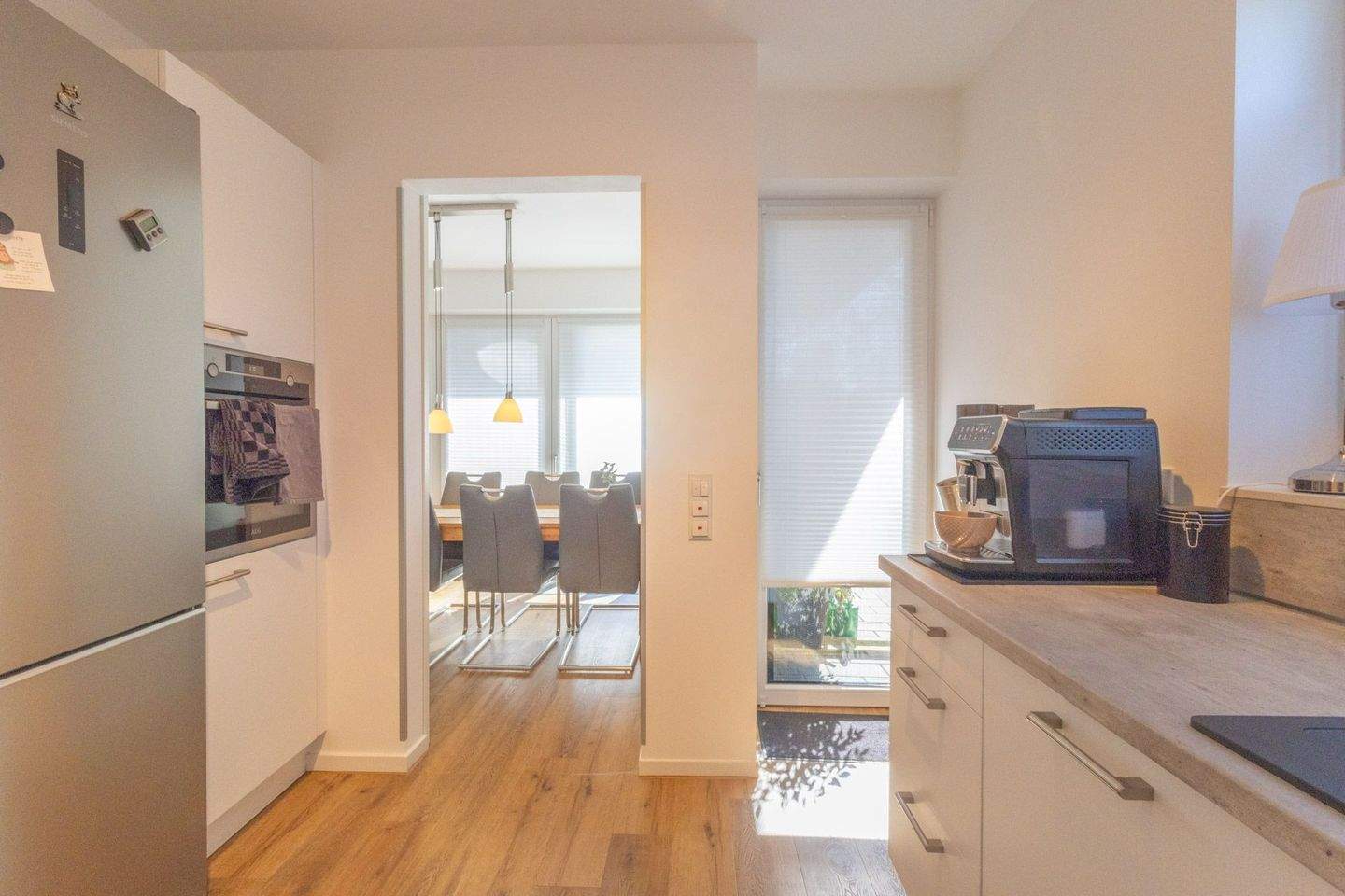 • Küche mit Schiebetür zum Wohnzimmer und Zugang zur Terrasse