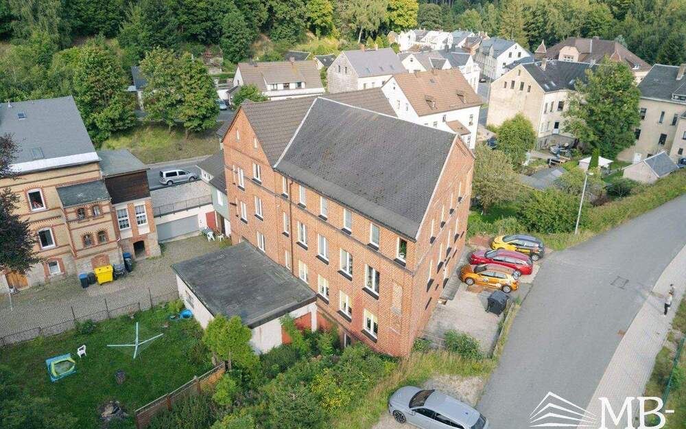 Vorderhaus EG Eingangsbereich mit repräsentativen Wintergarten, Mieter Physiotherapie, Fa. Geoanalytik, 1.OG Wellnessbereich, Hintergebäude: 1.OG Mieter Allianzversicherung 2 x, 2.OG Mieter Rechtsanwaltskanzlei, AWO Erzgebirge, L.Tax Steuerberater großer Kellerbereich auch nutzbar als Werkstatt, geräumiges massives Garagengebäude (mind. 4 Fahrzeuge) am Hintergebäude angrenzend