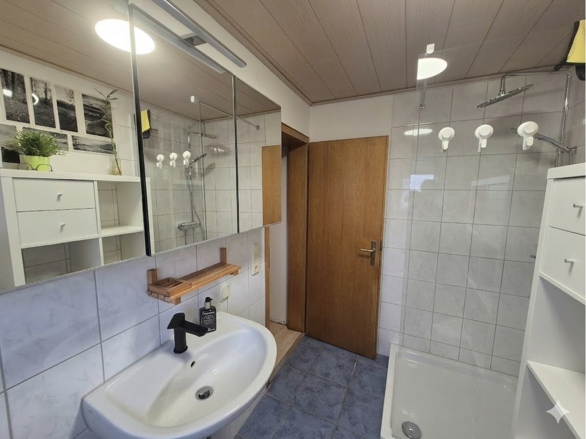 Modernes Badezimmer mit Dusche und Fenster