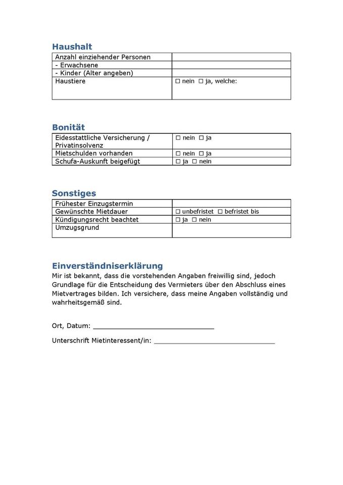 Angebot zur Miete