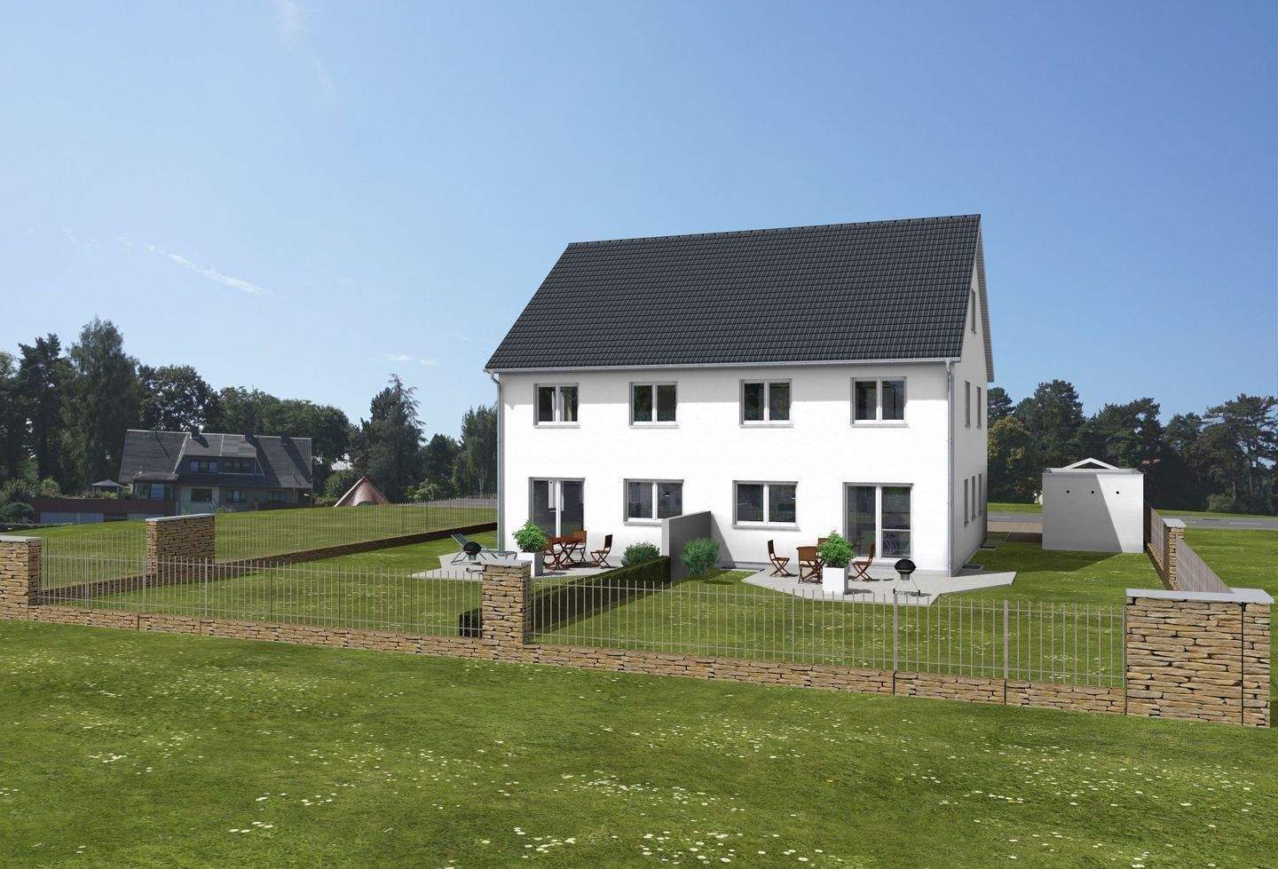 • DH Janic 38 Feucht Straße hinten 12.02.26_3D.jpg - Doppelhaushälften Neubau mit Keller in Feucht in Waldrandlage mit Grundstück