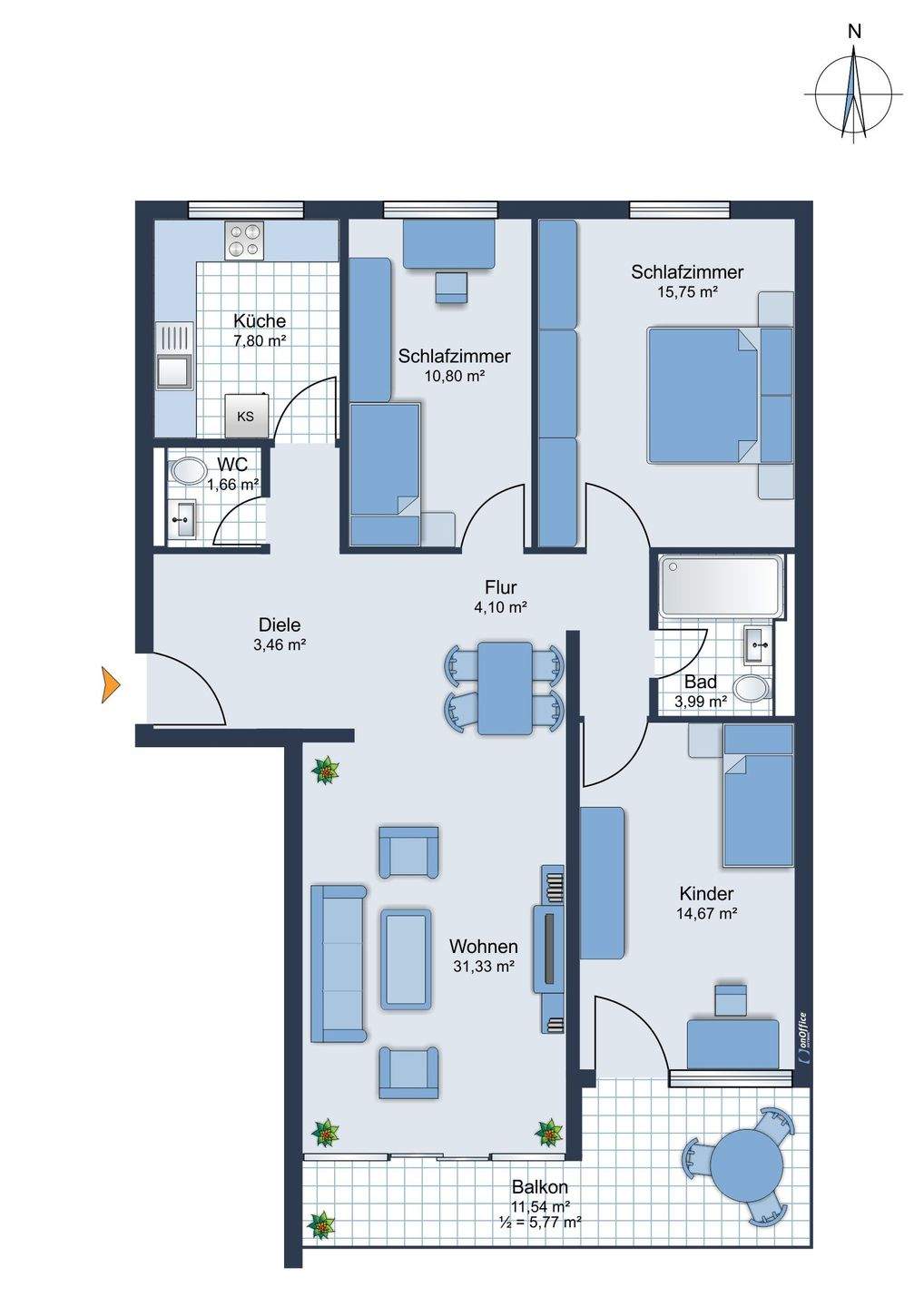 Wohnfläche:ca. 96,50 m²
