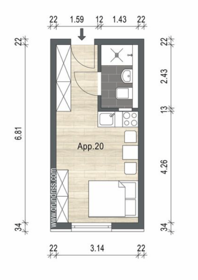 Zimmeranzahl :1.5 Gesamtgröße :ca. 21,00 m² Stand vom :14.03.2026