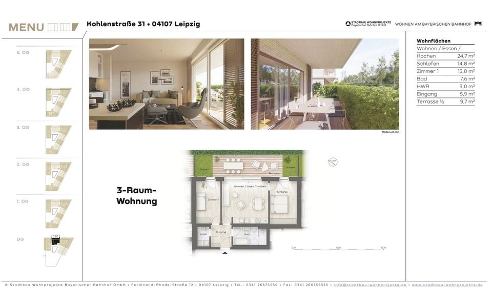 Sie befinden sich hier: Erstbezugswohnung Richtung Parkseite I energieeffizienter Neubau I Terrasse & Grünflächen in Leipzig Mitte - 3349862050-203-30065 | 1A-Immobilienmarkt.de