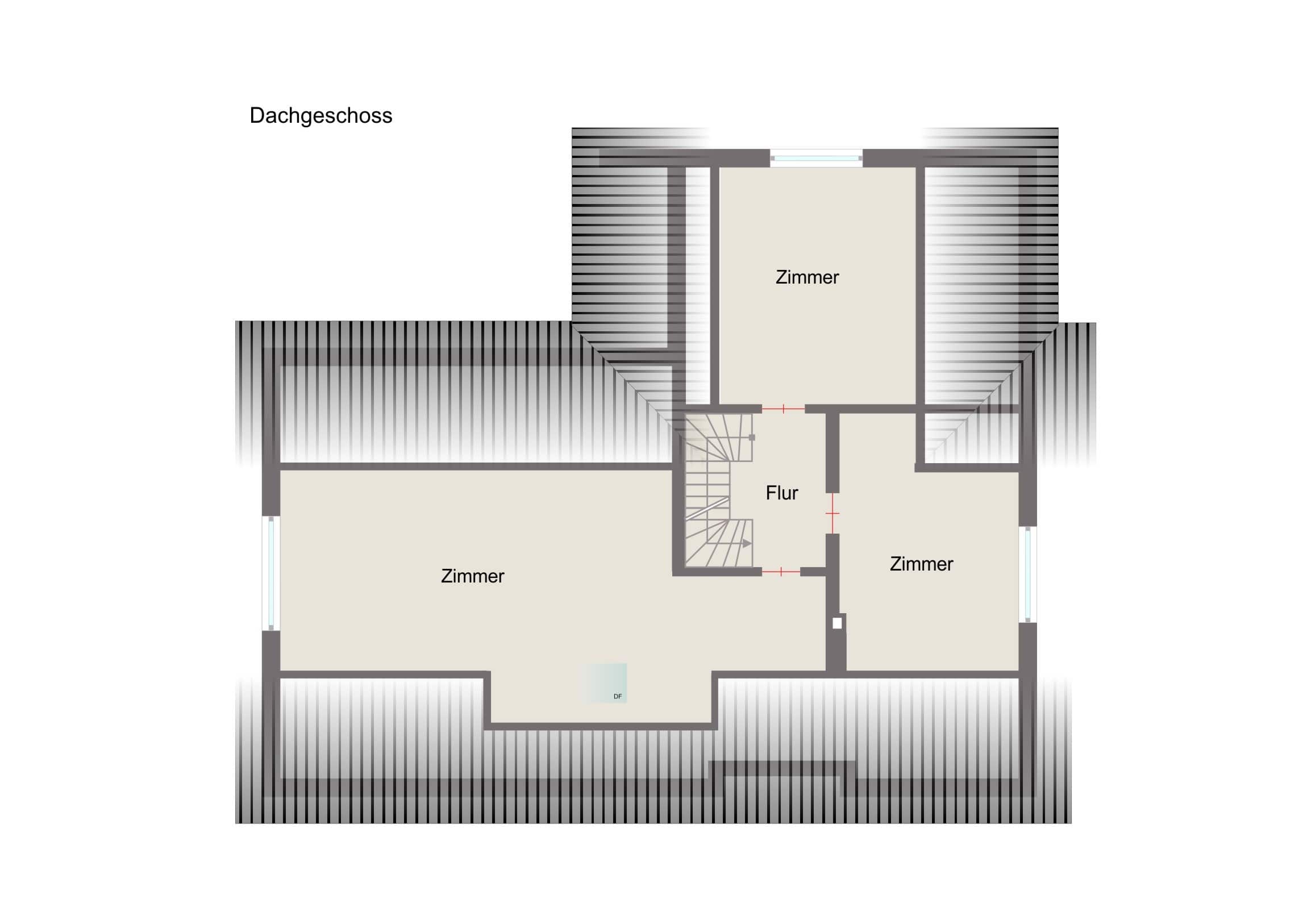 Die drei Räume im Obergeschoss befinden sich im Rohbau und warten auf einen Ausbau ganz nach Ihren Wünschen und Vorstellungen.