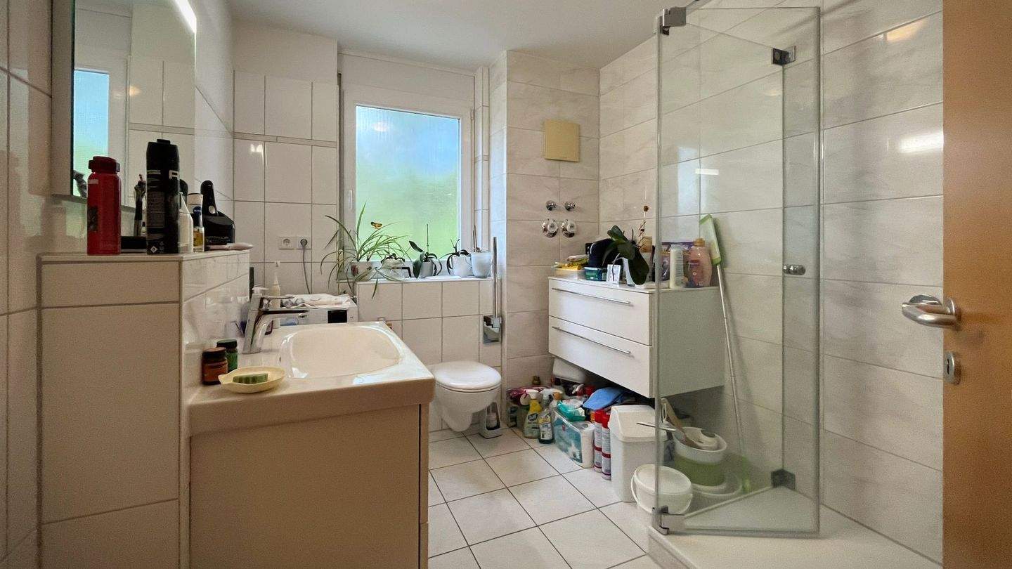 Das Tageslichtbad wurde 2024 modernisiert und präsentiert sich zeitgemäß - 2 Zimmer Etagenwohnung in Freiburg i. Br. / Vauban