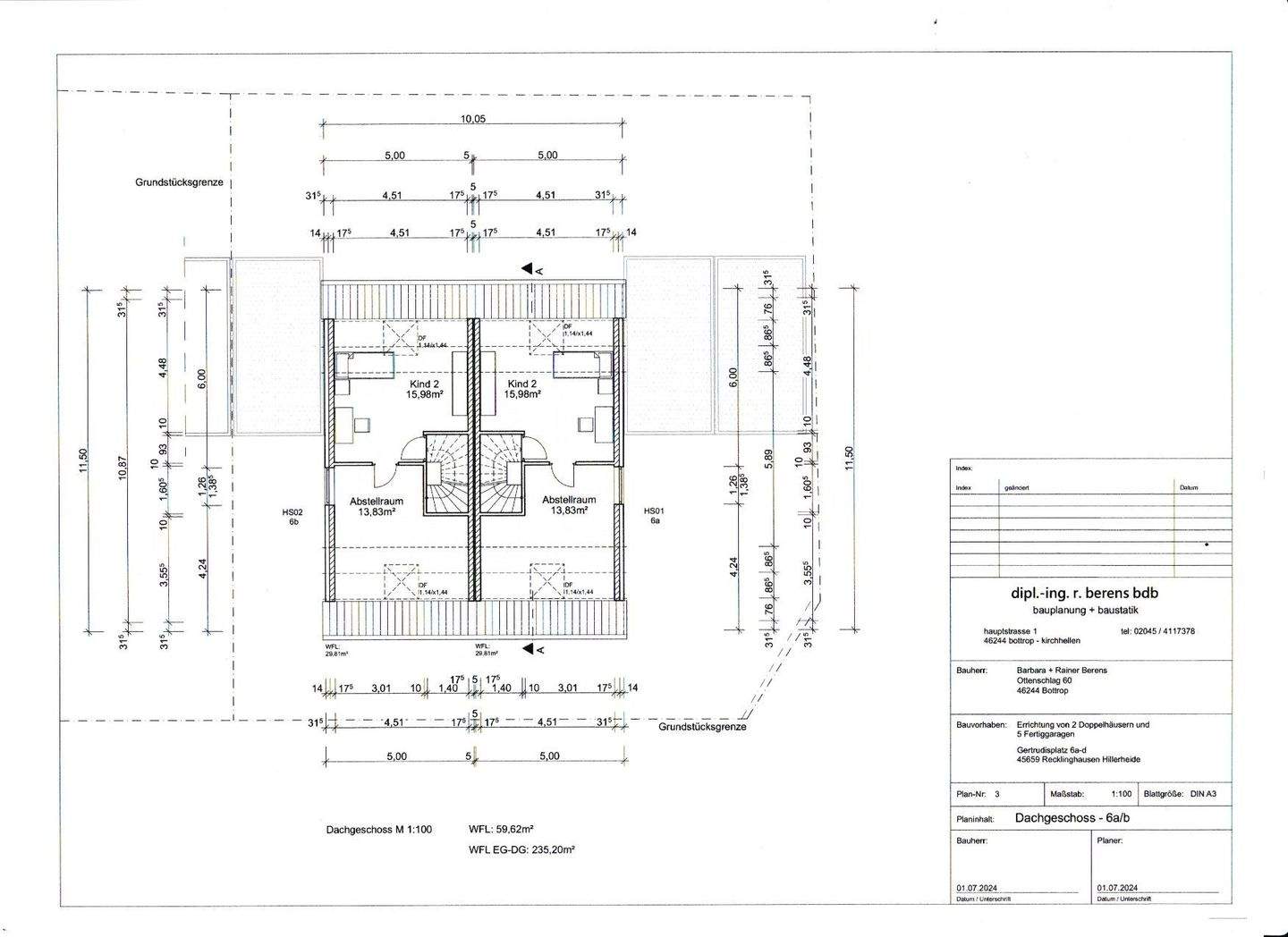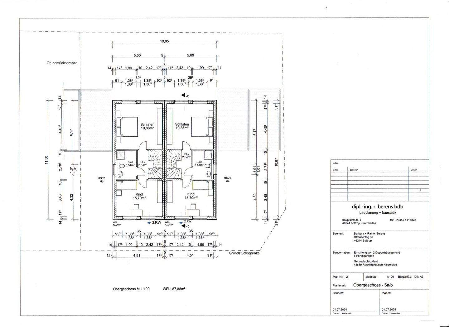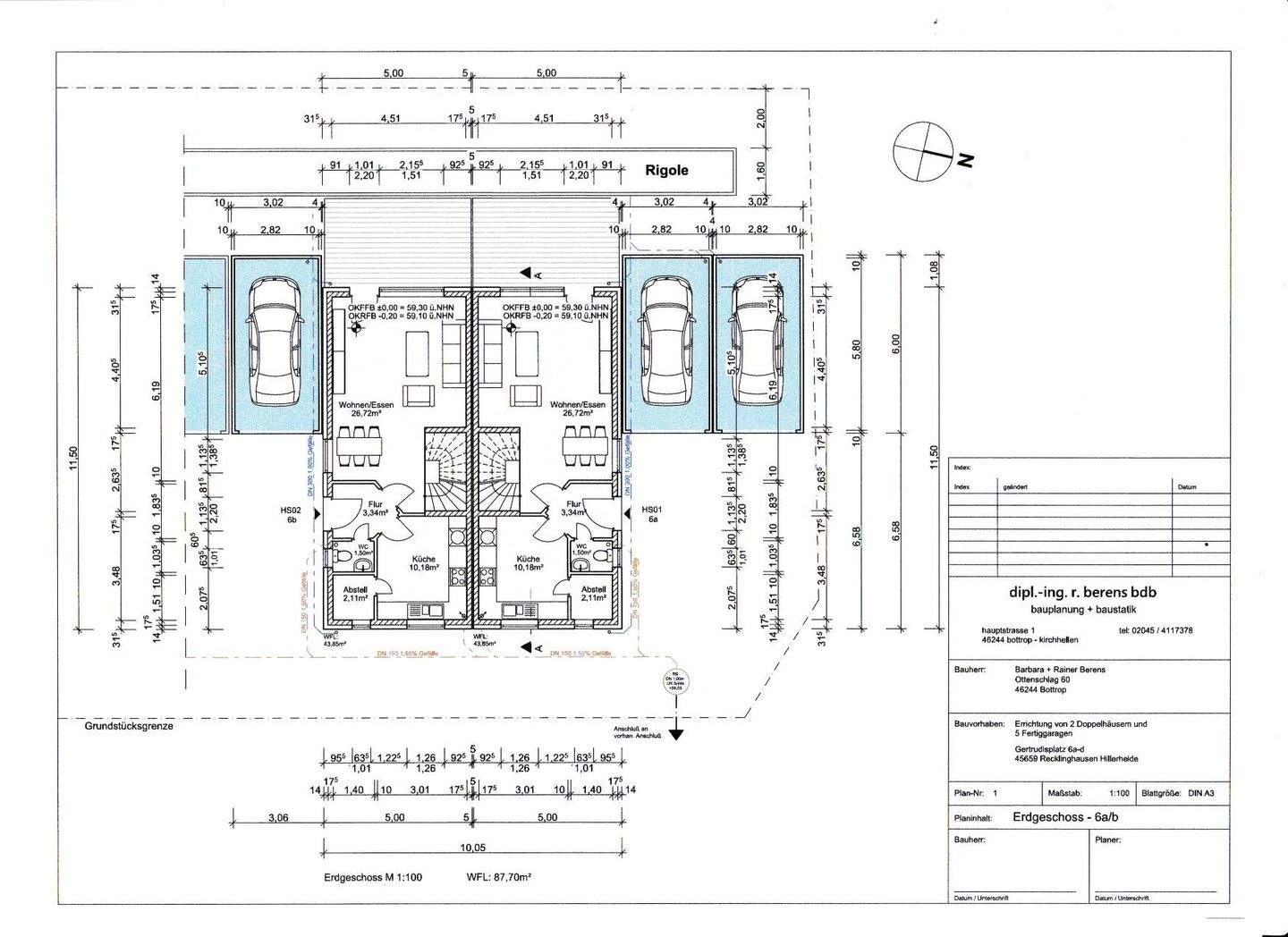 Neubau von projektierten 4 Doppelhaushälften am Gertrudisplatz in Recklinghausen.