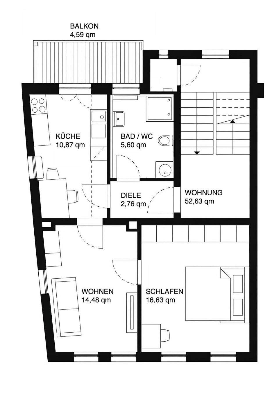 Zimmeranzahl :2 Wohnfläche :ca. 53,00 m² Frei ab :01.04.2026 Etage :3 Balkon :