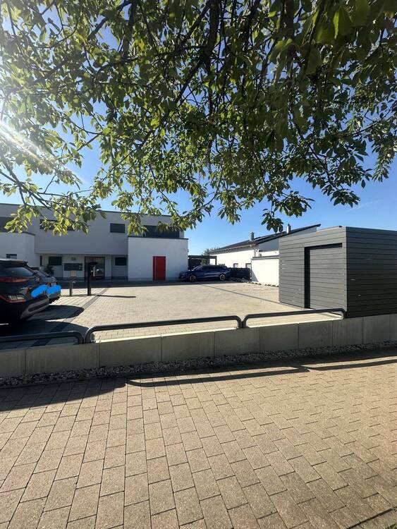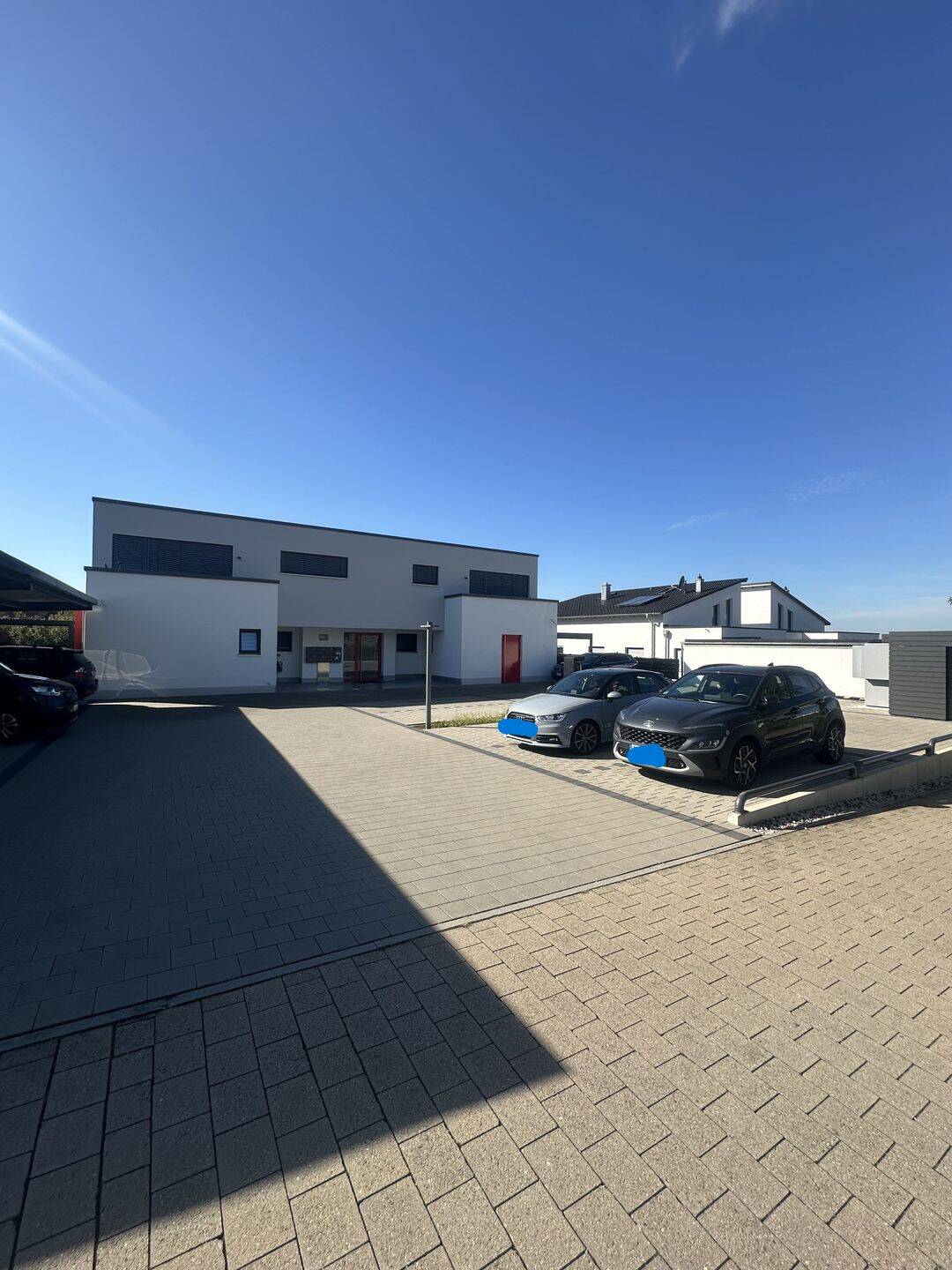 Außenansicht vorne mit Parkplätzen - Exklusive Erdgeschosswohnung mit Penthouse-Flair und Fernblick, Design trifft Wohnkomfort