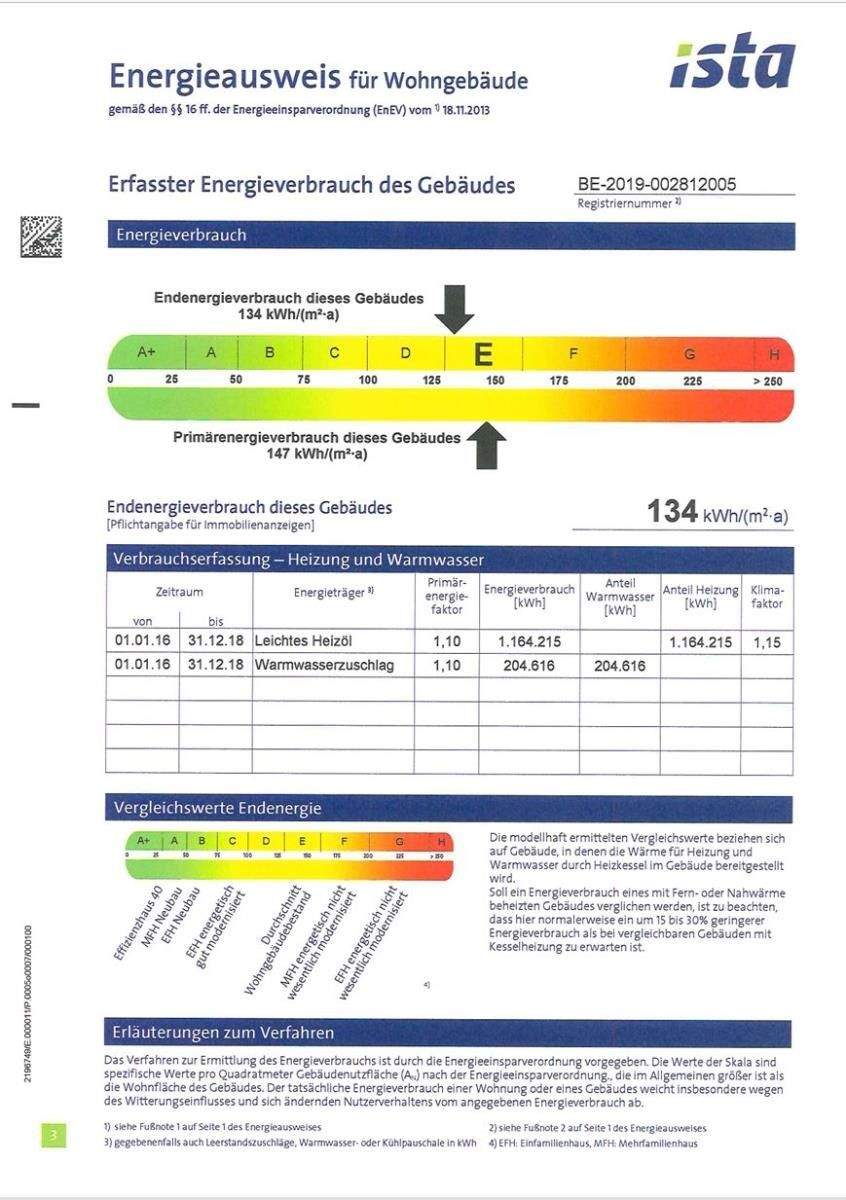 Energieverbrauchkennwert:134 kWh/(m²·a) kWh/(m²·a)