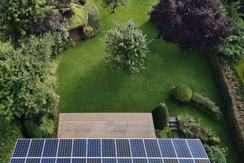 • Drohnenaufnahme Solarthermie und PV-Anlage -