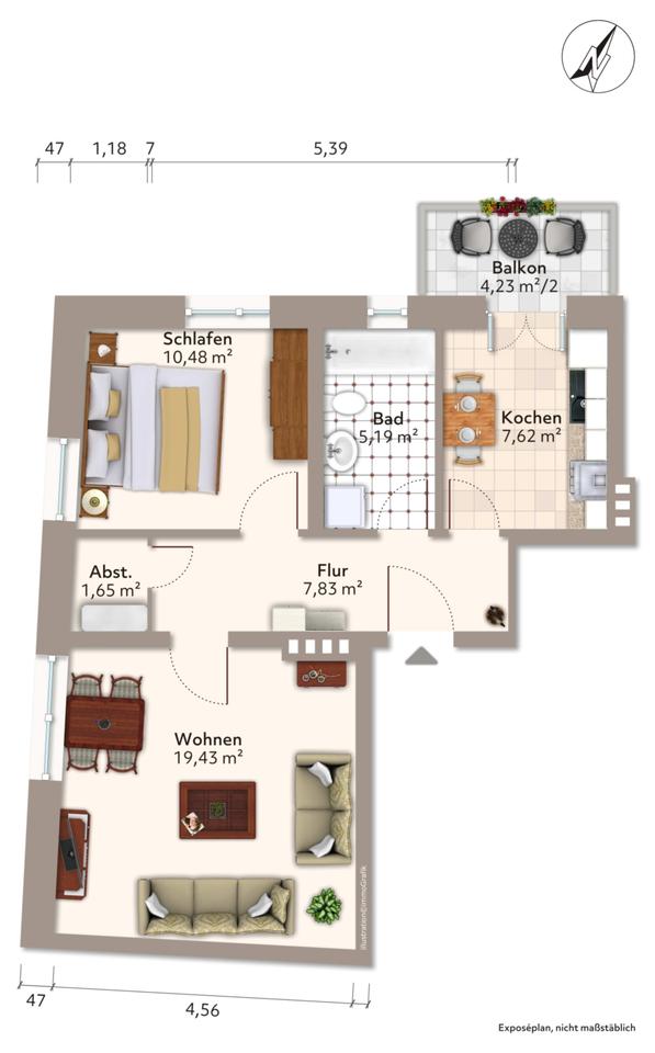 | Gesamtgröße: | ca. 54,32 m² |