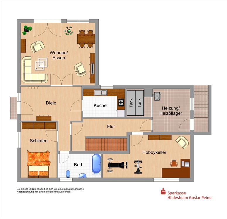 Eine Gewähr für die Richtigkeit sämtlicher im Exposé enthaltener Angaben und Abmessungen wird trotz sorgfältiger Bearbeitung von Daten, Bildern und Informationen nicht übernommen.