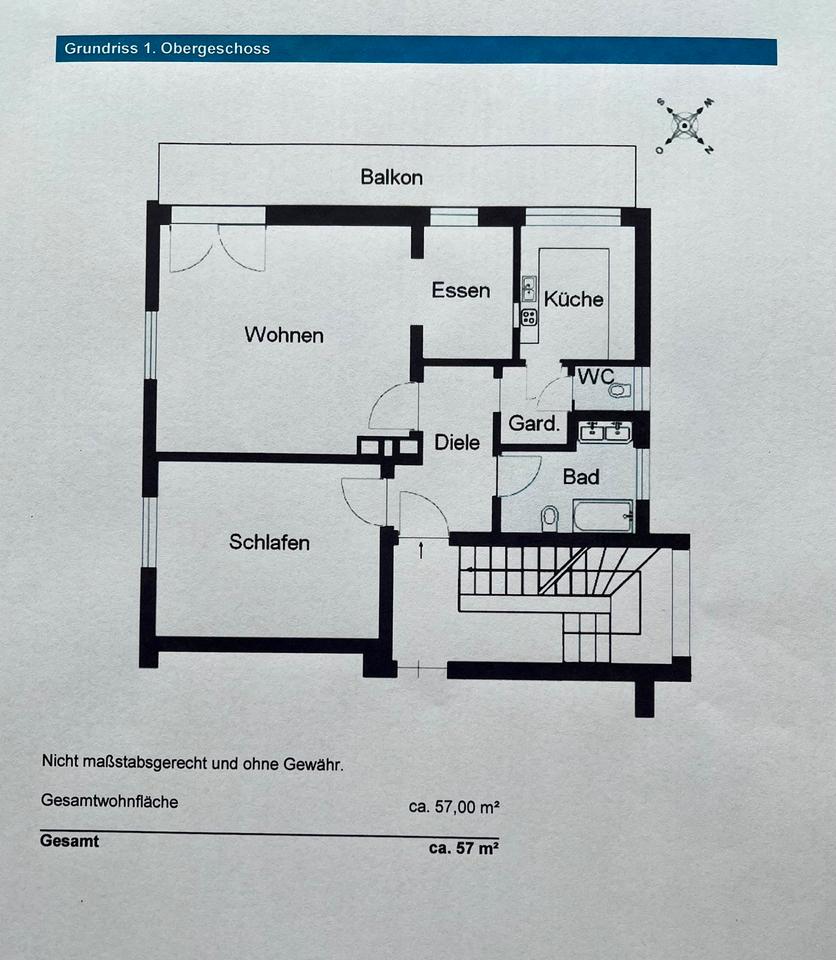 Gesamtgröße:ca. 57,00 m²