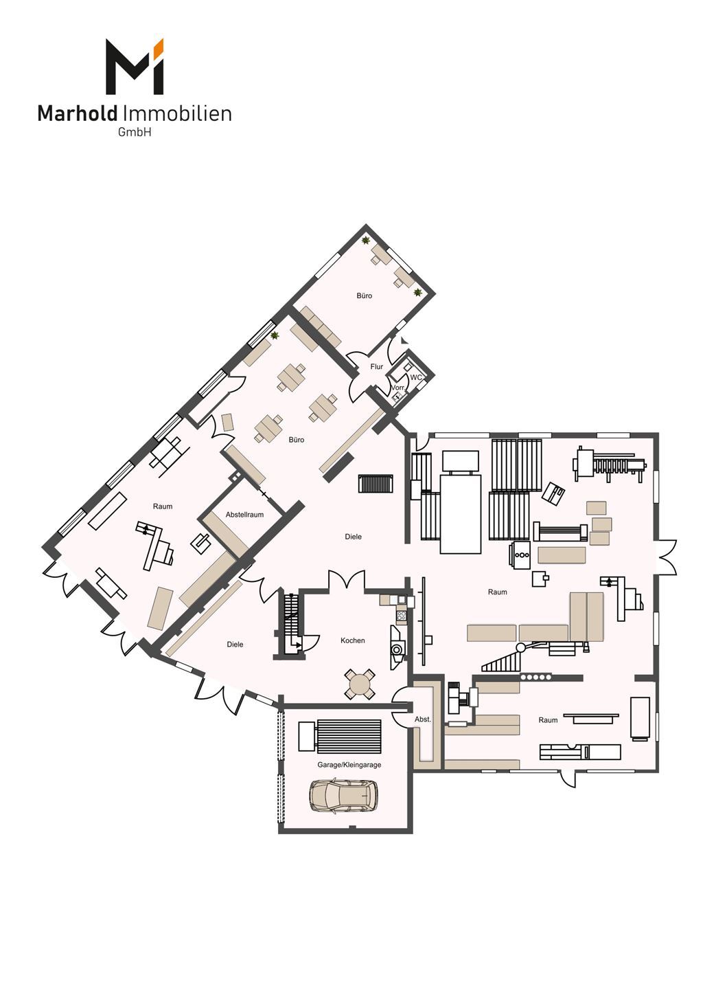 Eine Gewähr für die Richtigkeit sämtlicher im Exposé enthaltener Angaben und Abmessungen wird trotz sorgfältiger Bearbeitung von Daten, Bildern und Informationen nicht übernommen.