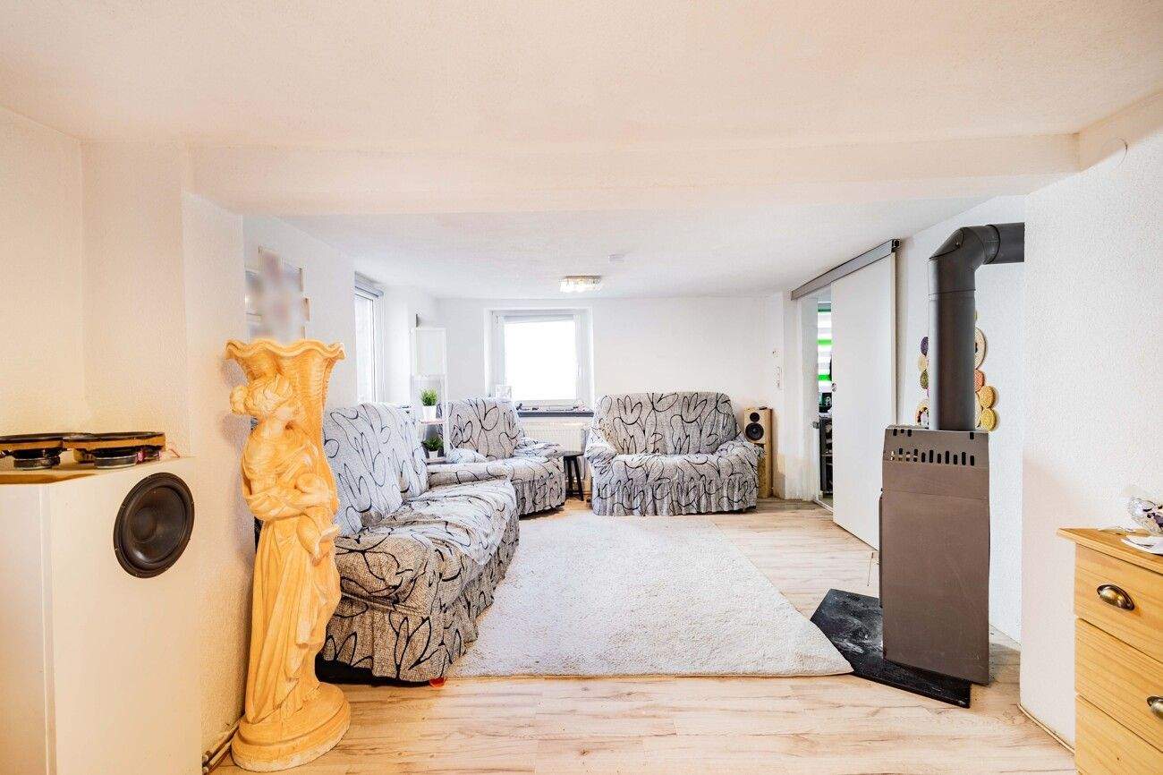 • Wohnzimmer mit Kamin - Einfamilienhaus mit 107,00 m² in Herbolzheim zum Kaufen