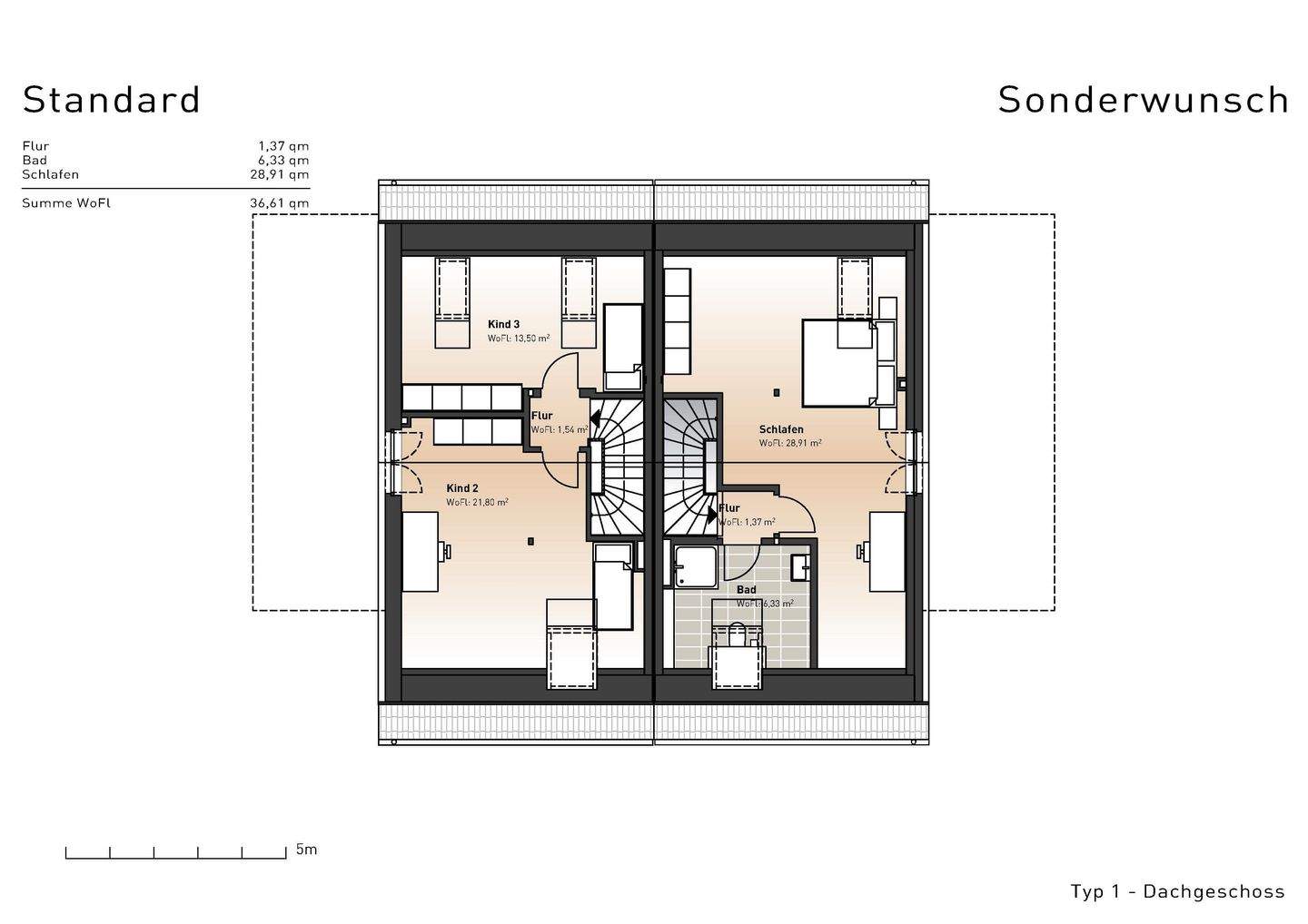 • Grundriss Dachgeschoss - bereits in der Variante Sonderwunsch fertiggestellt -