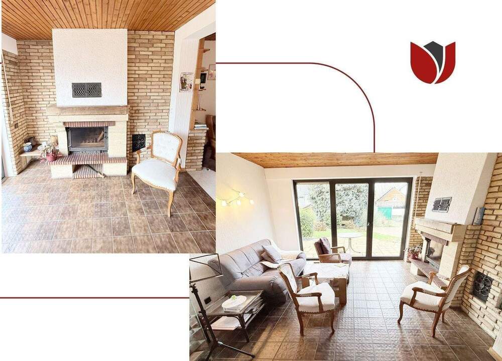 • Wohnzimmer - gartenseitig - mit Kamin und Zugang z -