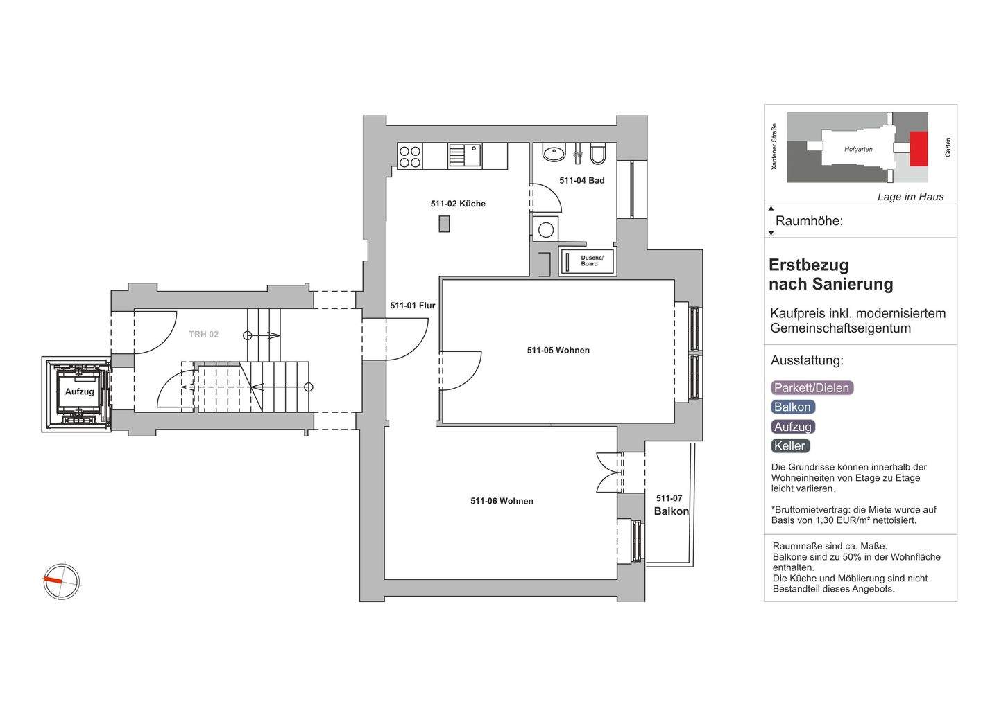 Gesamtgröße:ca. 65,00 m²