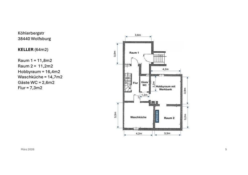 Zimmeranzahl :5 Grundstücksgröße :ca. 591,00 m² Gesamtgröße :ca. 133,00 m² Baujahr :1951 Stand vom :21.03.2026