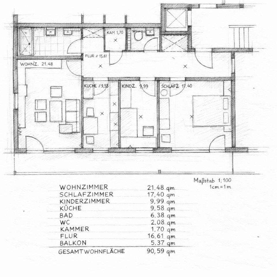 Gesamtgröße:ca. 91,00 m²