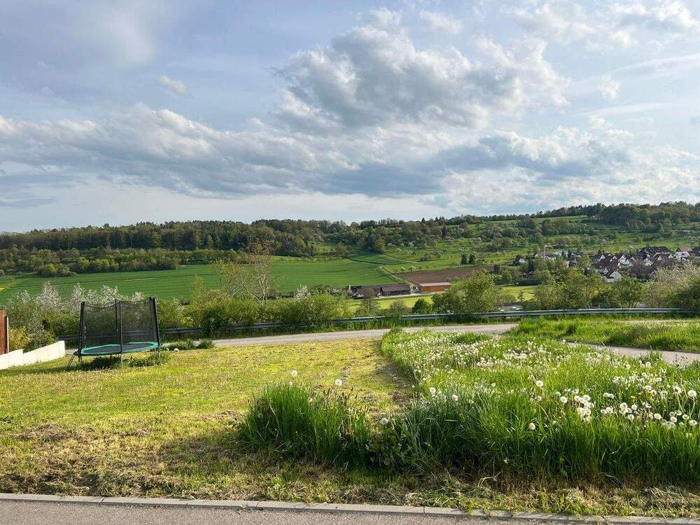 Blick auf und vom Bauplatz - 'Traumhaftes Wohnen in unverbaubarer Aussichtslage' Modernes EFH in Ostelsheim. Mit Doppelgarage