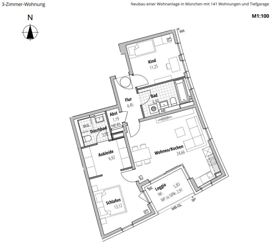 Etagenwohnung in München, Aubing-Lochhausen-Langwied 81249