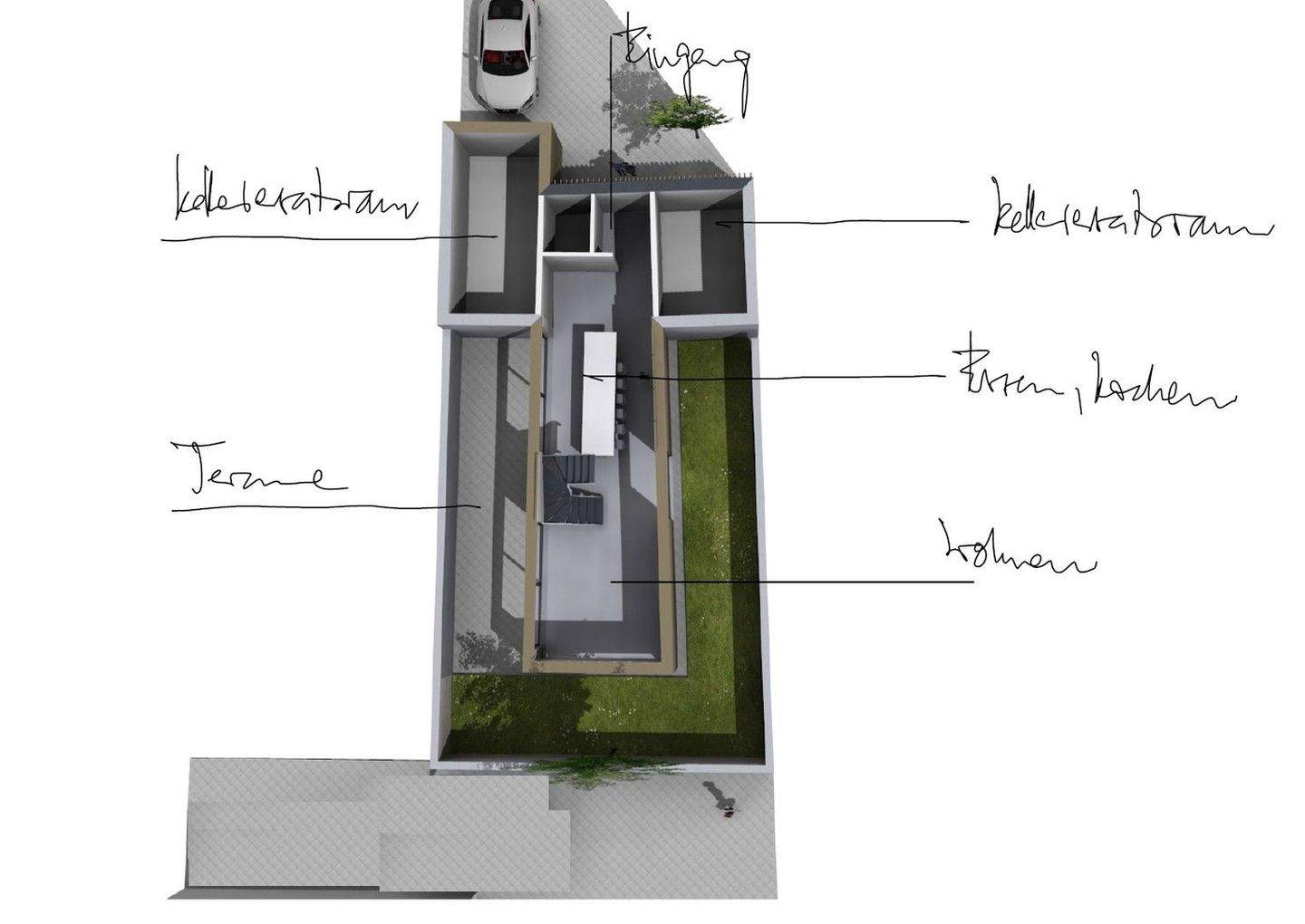 • Wohn-/Essbereich - Baugrundstück mit genehmigter Bauvoranfrage für freistehendes Architektenhaus 'Small Cube'