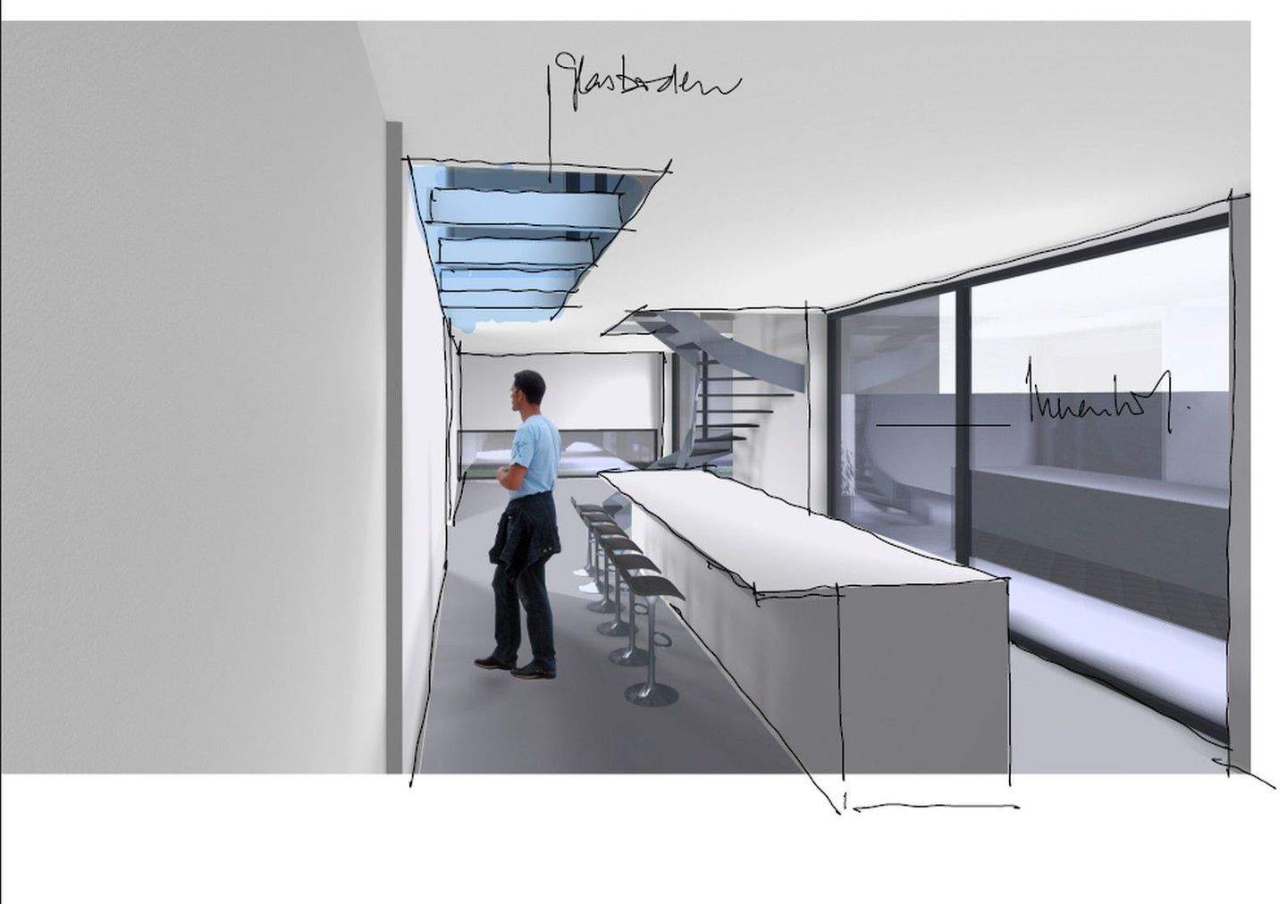 Wohn-/Essbereich - Baugrundstück mit genehmigter Bauvoranfrage für freistehendes Architektenhaus 'Small Cube'