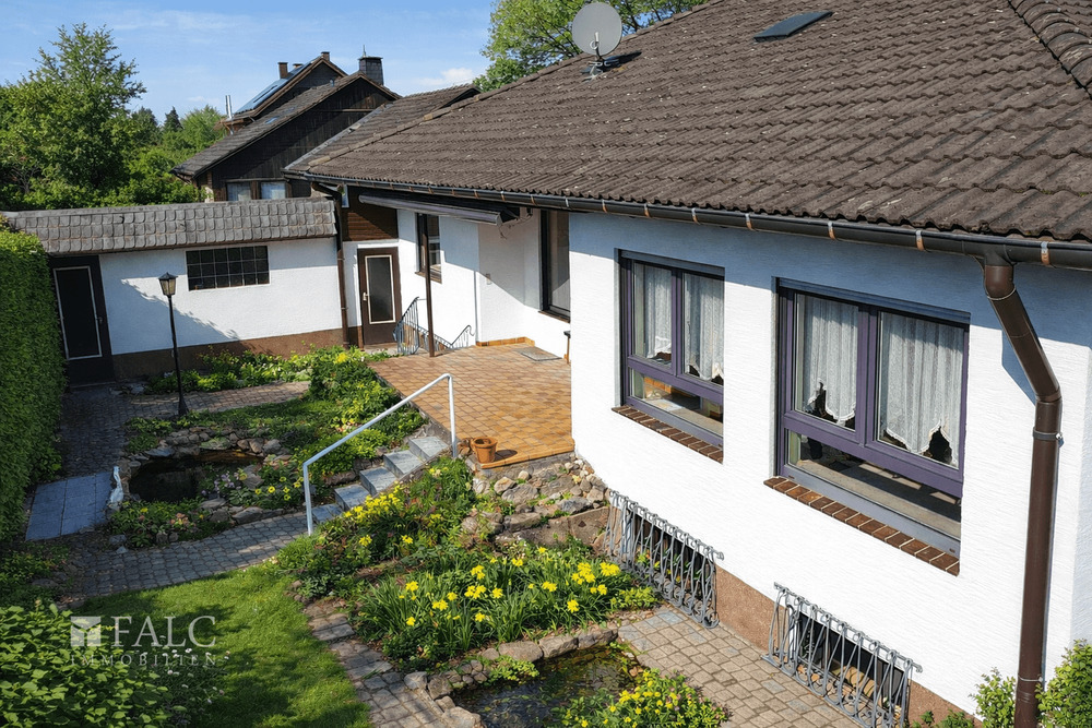 • Teich mit Blick in den Garten -