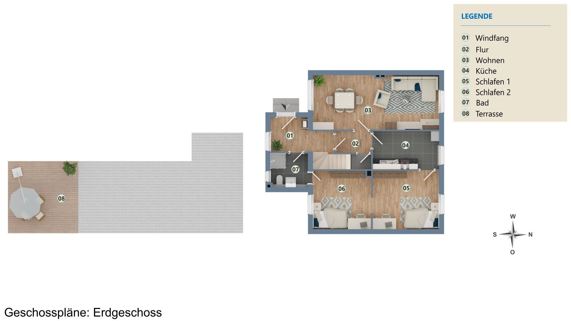Praktische Details wie Kunststofffenster mit Außenjalousien, zwei Stellplätze sowie eine Garage direkt auf dem Grundstück und ein weitläufiger Garten erhöhen den Wohnkomfort und bieten gleichzeitig viel Raum für Freizeitgestaltung.