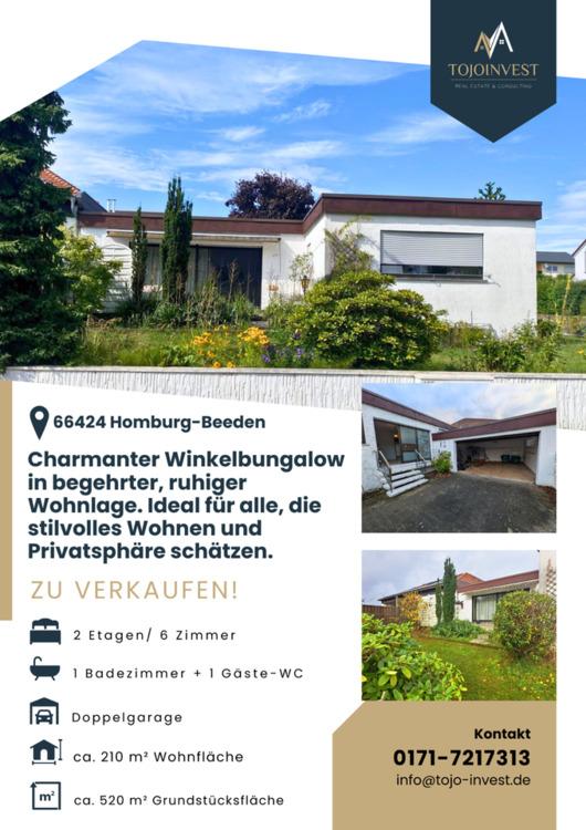 Sie befinden sich hier: Großzügiger Winkelbungalow (210 m²) in Top-Lage von Homburg in Homburg - 3352022307-208-372 | 1A-Immobilienmarkt.de