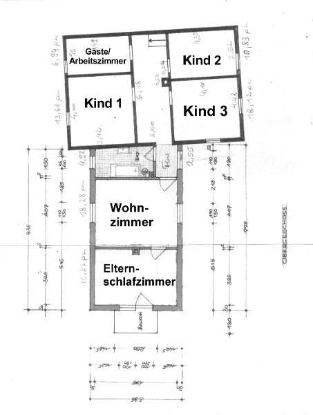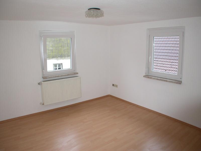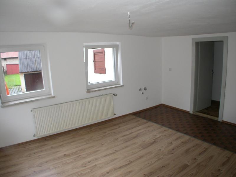 Das Einfamilienhaus wurde im Jahre 2012/2013 umfangreich renoviert und war ursprünglich ein Bauernhaus mit verschiedenen Ausbaustufen, was sich auch in den unterschiedlichen Deckenhöhen zeigt. Im Erdgeschoss befinden sich eine große Wohnküche mit Speisekammer und eine Waschküche mit Waschmaschinenanschluss, Dusche und WC. Da die Deckenhöhe in der Küche recht gering ist, ist es schwierig, Hochschränke zu stellen. Das Haus wird ohne Einbauküche vermietet, so dass der Mieter seine eigene Küche mit einbringen kann. Im ersten Obergeschoss befinden sich 4 Schlafräume, ein Bad mit Badewanne sowie das Elternschlafzimmer mit Zugang zum Balkon, das über das Wohnzimmer erreichbar ist. Beide Bäder wurden im Zuge der Renovierungsmaßnahmen 2012/2013 neu gestaltet. Zum Mietobjekt gehört eine Garage und ein zur eignen Nutzung zur Verfügung stehender Garten, der im Wesentlichen aus Rasenfläche besteht. Ein überdachter Freisitz am Haus kann ebenfalls genutzt werden. Haustiere sind nach Rücksprache möglich, der Betrieb eines Kaminofens ist nicht möglich.