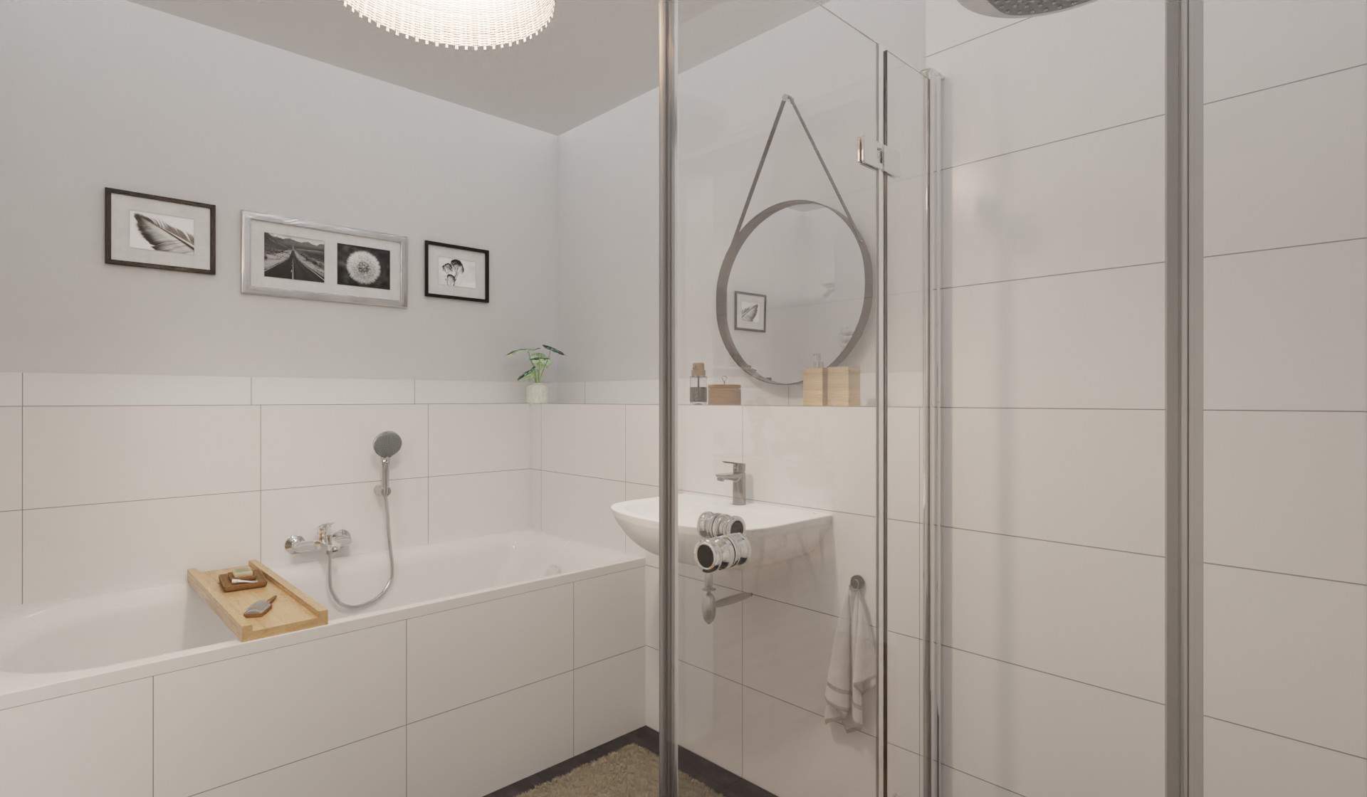 • Modern gefliestes Badezimmer mit bodengleicher Dusche und Badewanne -