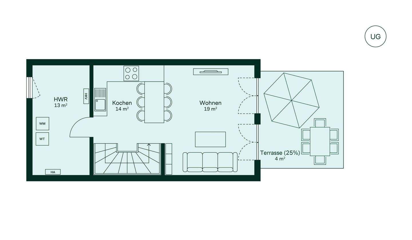 • Grundriss UG Reihenhaus im Quartier Wurmtalgärten -
