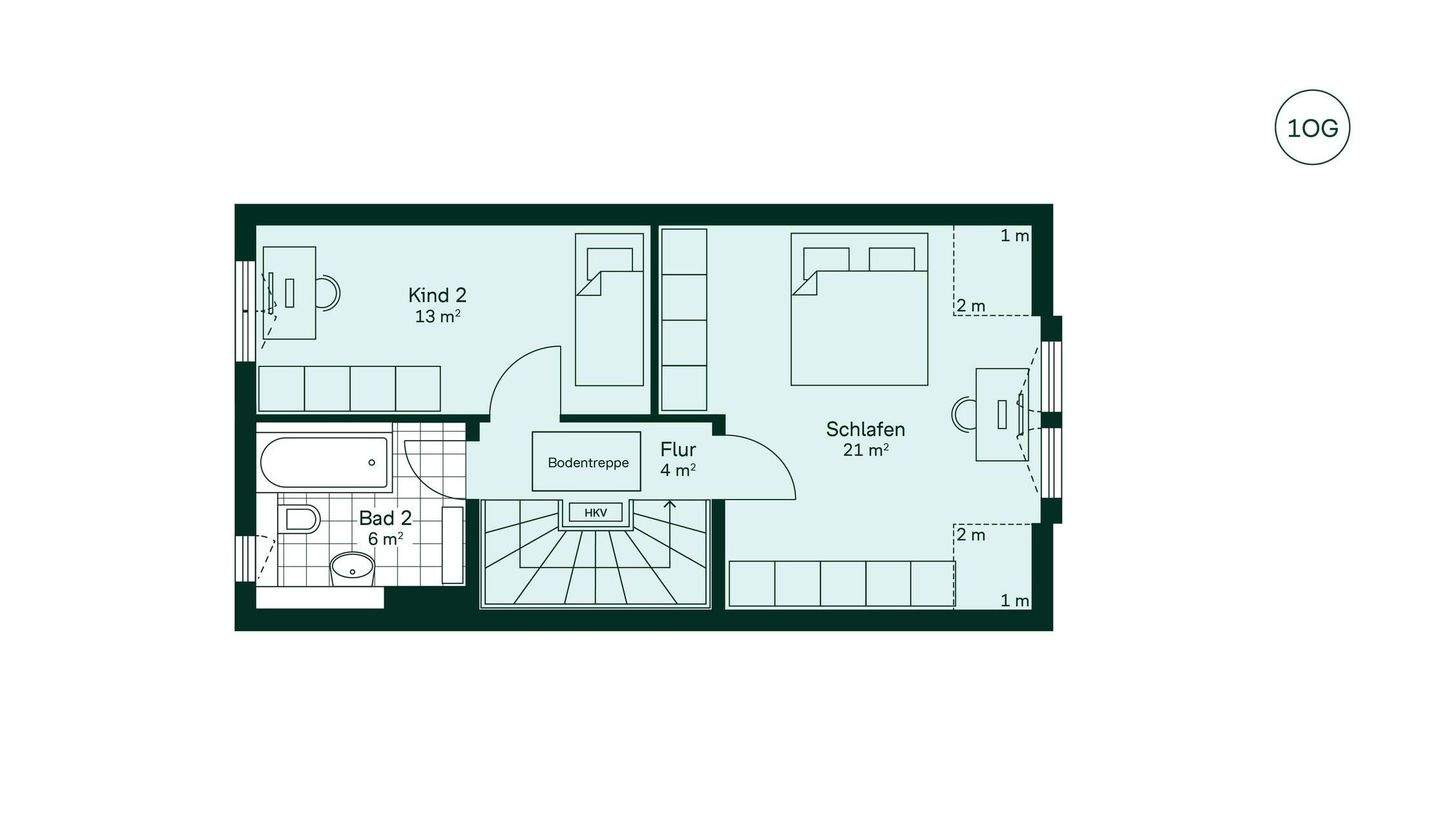 • Grundriss OG Reihenhaus im Quartier Wurmtalgärten -
