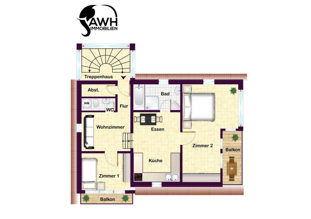 Zimmeranzahl :3 Wohnfläche :ca. 135,00 m² Baujahr :1973 Frei ab :sofort Balkon :